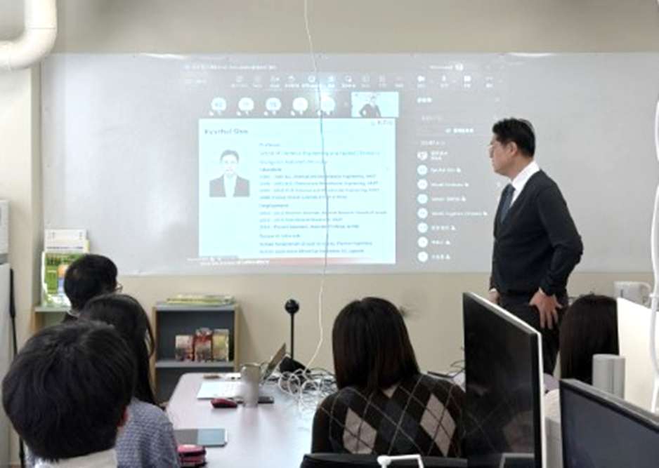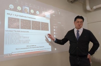 During his visit, we hosted an online seminar connecting Prof. Shin with hydrate researchers across Japan. He delivered an inspiring lecture on clathrate hydrates formed with guest molecules that strongly interact with the host water framework, such as ammonium salts and methanol.